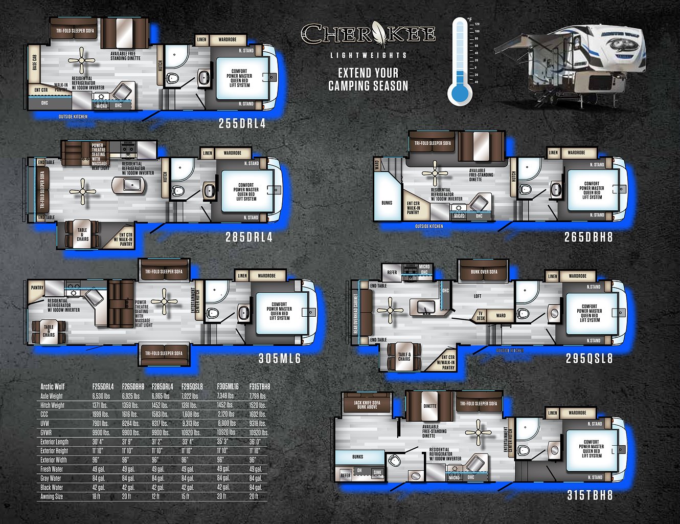 This Arctic Wolf combines the space of a luxury fifth wheel with a towable design that works with many ½-ton and ¾-ton trucks. Perfect for family trips, seasonal camping, or extended living.